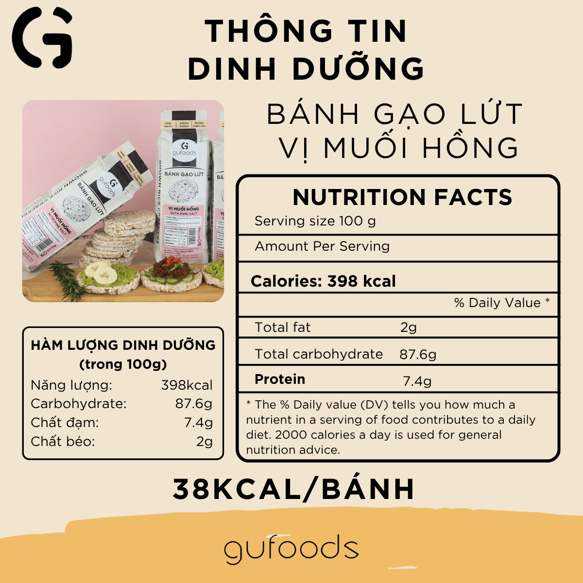 Trong 100g bánh gạo lứt muối hồng GUfoods có: