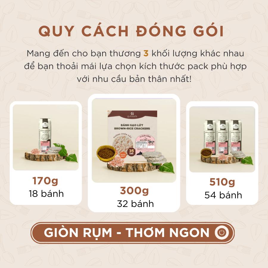 Với thành phần lành tính, tự nhiên, bạn thương có thể yên tâm sử dụng bánh gạo lứt cho hành trình sống xanh ăn lành của mình. Mật độ calo thấp, chỉ có 38 calo cho mỗi chiếc bánh với thể tích lớn, và phải nhai kỹ trước khi nuốt nên bánh gạo lứt GUfoods là lựa chọn lý tưởng để nhâm nhi như một món ăn vặt healthy lúc buồn chán, căng thẳng, hay khi cơn thèm ăn vặt bất thình lình ập tới.