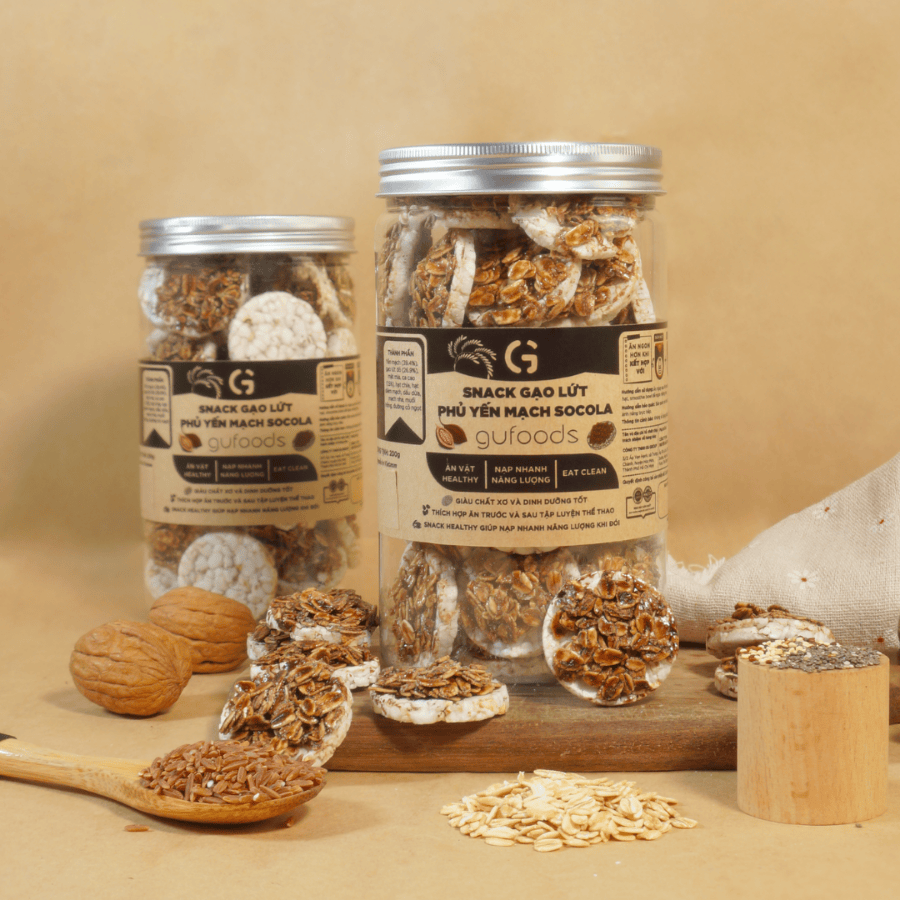 Sự kết hợp lôi cuốn giữa đế bánh gạo lứt giòn rụm và lớp yến mạch nướng giòn vị socola ngon miệng sẽ chiều chuộng vị giác của bạn thương trong những ngày Tết.