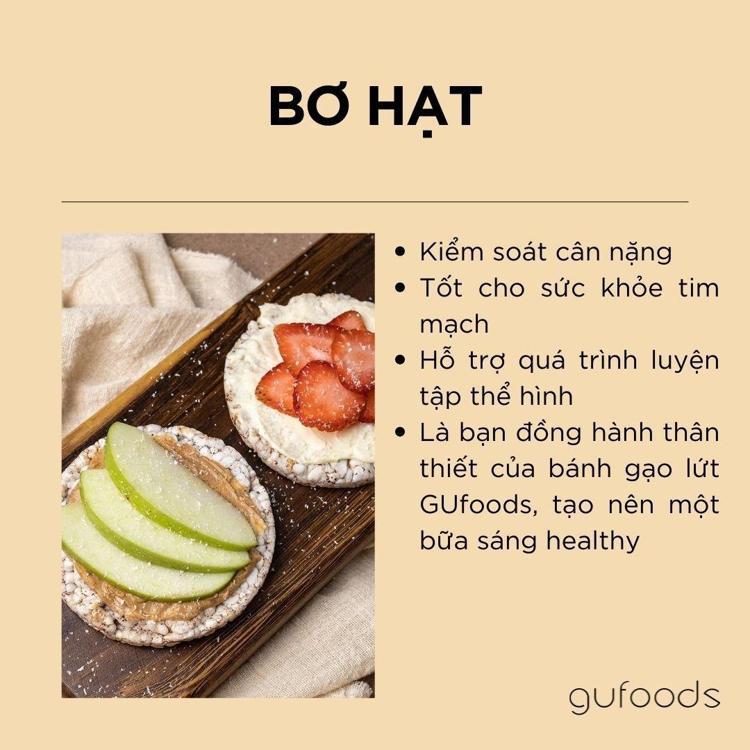 - Bơ hạt ăn kiêng GUfoods dùng kèm với bánh mì, bánh sandwich hoặc làm sốt chấm trong các bữa ăn gia đình. Một gợi ý là: Bánh gạo lứt mix trái cây ăn cùng bơ hạt của Gufoods là sự lựa chọn hoàn hảo đó bạn thương ạ!