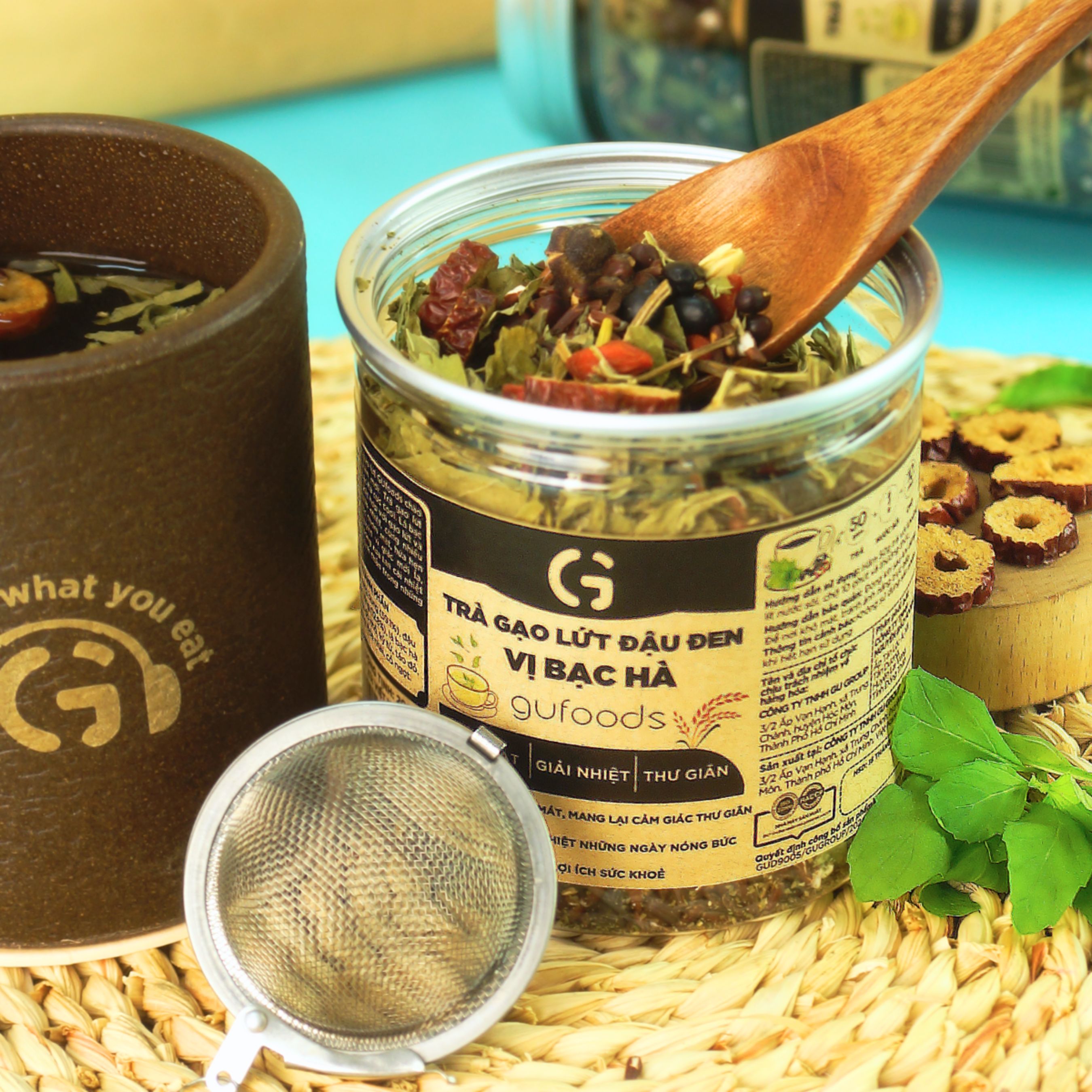 1. Trà gạo lứt đậu đen vị bạc hà GUfoods – Mát lạnh sảng khoái từng ngụm