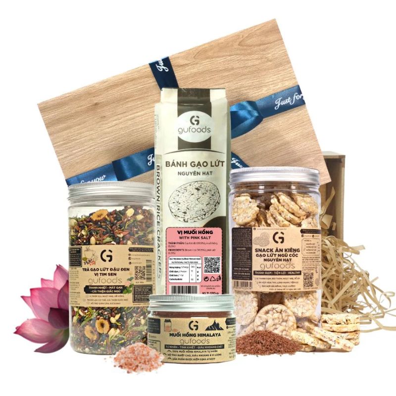 Một số sản phẩm có thành phần muối hồng bạn thương có thể tìm thấy tại nhà GU là Bánh gạo lứt vị muối hồng Himalaya, Muối hồng Himalaya…