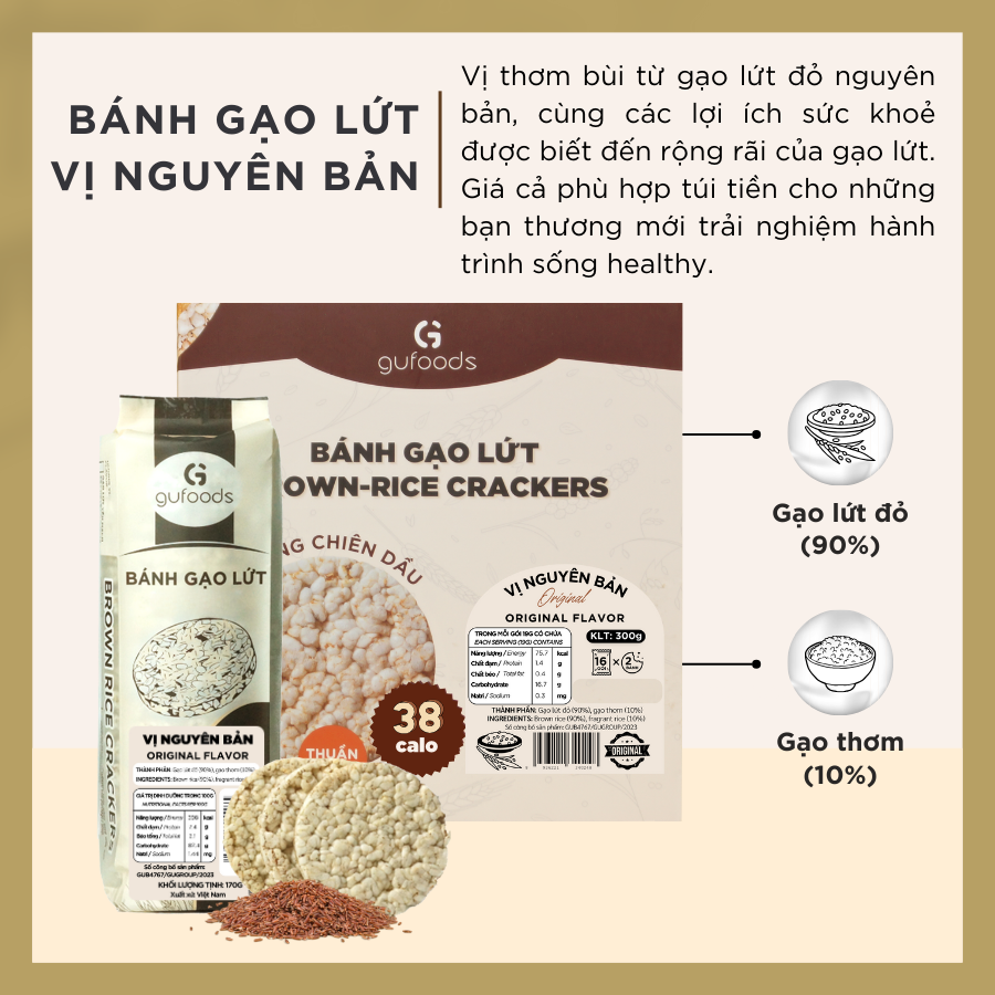Trong 100g bánh gạo lứt nguyên bản GUfoods có:
