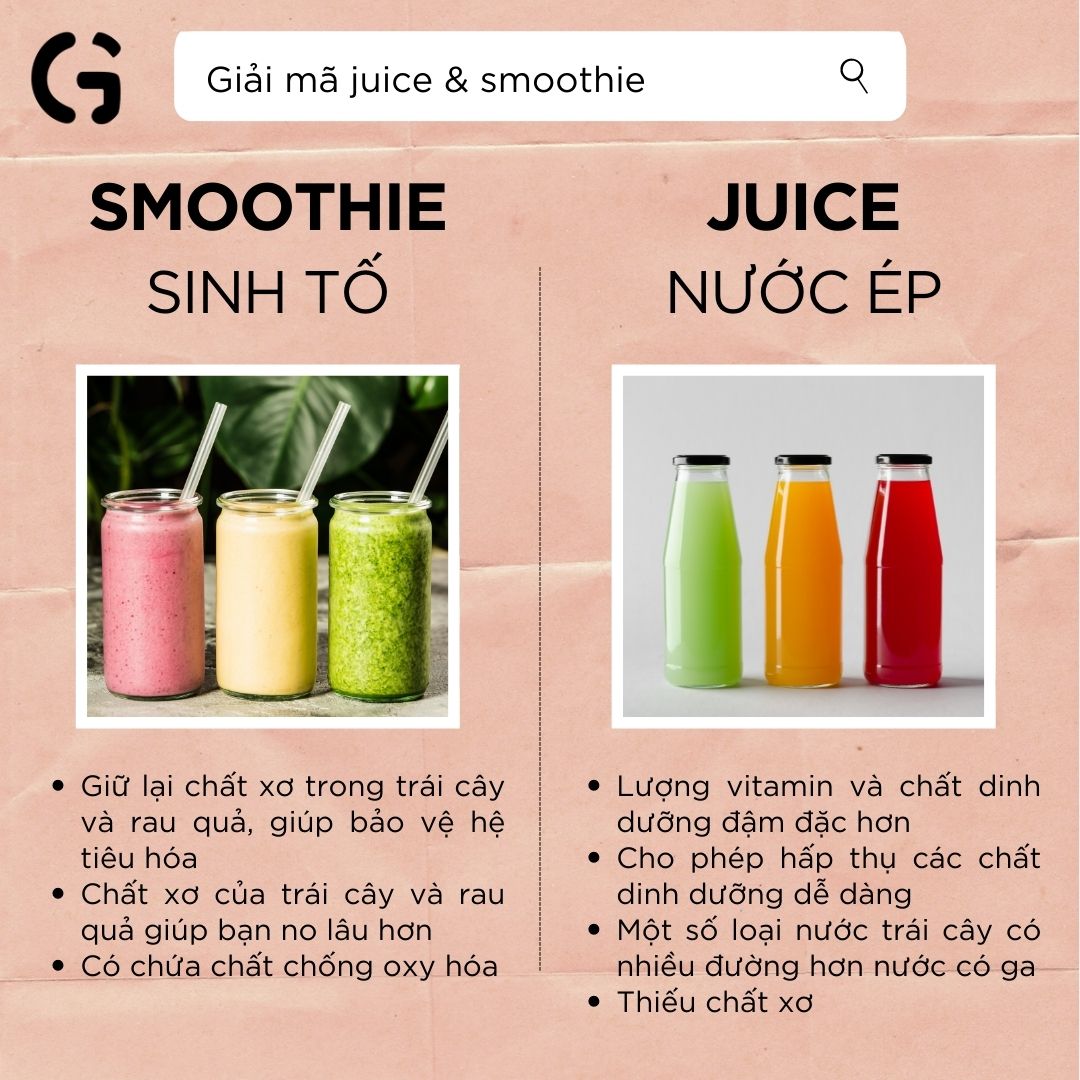 Phải nói là món nào cũng thơm ngon tuyệt dzời và dồi dào chất dinh dưỡng. Tuy nhiên để mà nói cái nào tốt hơn ấy, chắc GU ngã ngay về em SMOOTHIE. Lý do đơn giản bởi vì ẻm giữ lại được nguồn chất xơ trong rau quả, là cánh tay đắc lực giúp tụi mình cải thiện chức năng tiêu hóa và kiểm soát lượng đường trong máu đấy! 🌻🌻