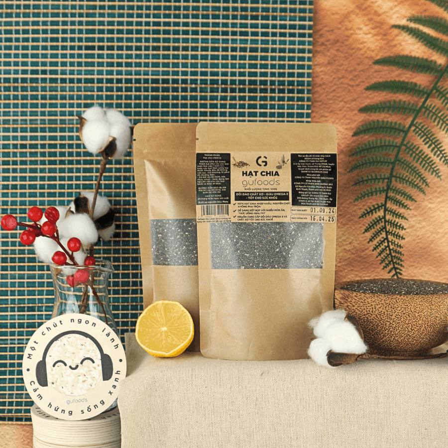 Hạt chia GUfoods là nguyên liệu healthy quen thuộc trong gian bếp của những bạn thương yêu thích eat clean và lối sống lành mạnh. Không chỉ dễ dàng kết hợp vào nhiều công thức món ăn và thức uống, hạt chia còn giàu chất xơ, Omega-3 và khoáng chất, giúp hỗ trợ tiêu hóa và bổ sung năng lượng tự nhiên. Nếu bạn đang theo đuổi chế độ ăn healthy, đừng quên thêm hạt chia vào thực đơn để hành trình sống xanh thêm ngon, lành nhé!