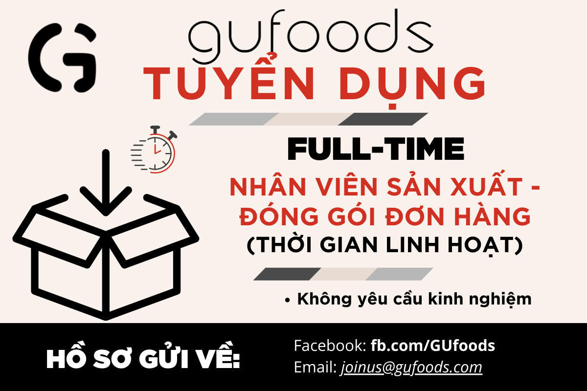 GUfoods là nhà sản xuất và bán lẻ đa kênh kết hợp thương mại điện tử, cung cấp một cách chọn lọc các thực phẩm made-in-Vietnam, ngon - sạch - an toàn và tốt cho sức khoẻ. GUfoods hiện đang tìm kiếm nhân viên part-time mảng sản xuất - đóng gói cho các sản phẩm của công ty.