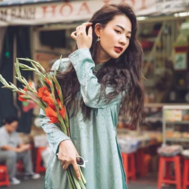 Sự kết hợp giữa những bó hoa tươi cùng bộ áo dài sẽ mang lại một không khí Tết vừa cổ điển vừa thanh lịch.