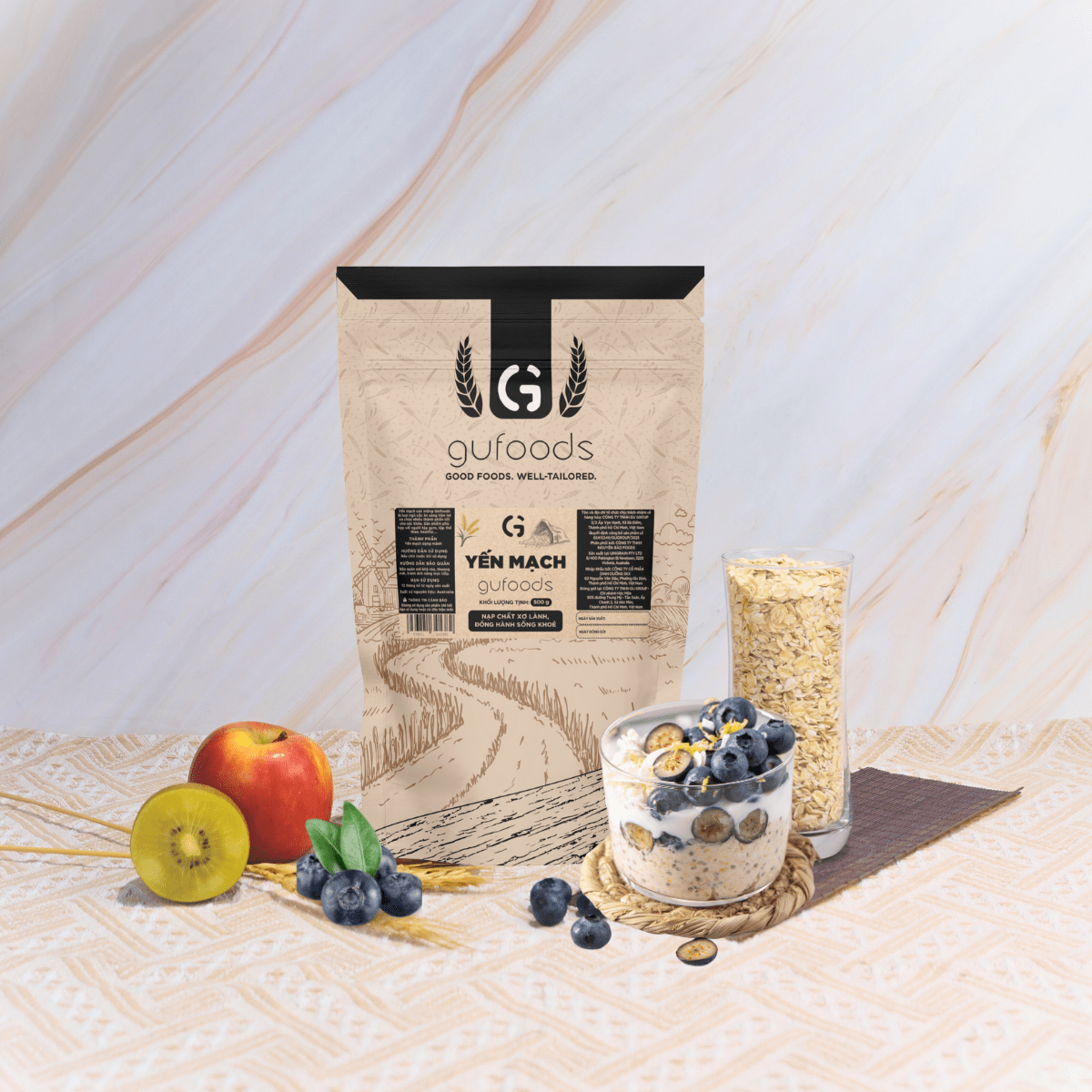 Khác với yến mạch cán mỏng cần ngâm lâu, yến mạch cán vỡ GUfoods nấu nhanh, chín đều, giữ được độ dẻo và vị bùi thơm tự nhiên, phù hợp để nấu cháo, pha cùng sữa ấm hay làm overnight oats.