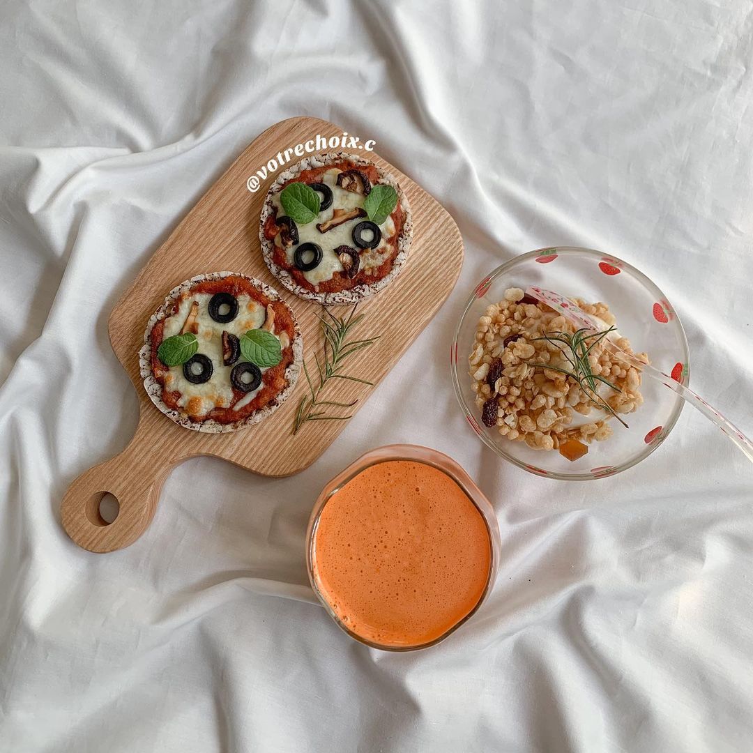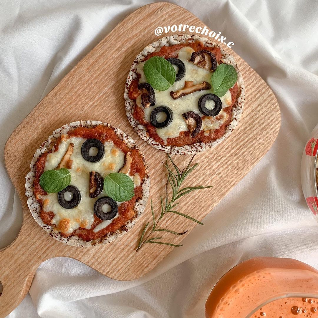 Cách làm dễ lắm các cậu ơiiii, chỉ cần bỏ nguyên liệu theo bước cà chua và thịt > phô mai > olive và nấm rồi nướng lò 2 phút, thêm phần trang trí màu xanh và woaaaalaaaaaaa các cậu đã có bánh PIZZA GẠO LỨT
