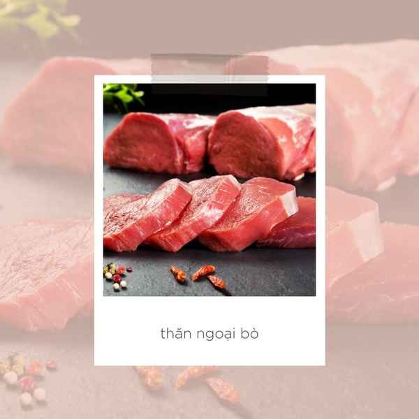 Thăn ngoại bò có nguồn gốc từ Úc hoặc Mỹ. Đây là phần thịt ở phía lưng bò, đây được đánh giá là phần thịt ngon ngang với phi lê, và là phần thịt ngon nhất, phù hợp nhất để làm món Steak. Phần thịt bò nhập khẩu này không quá khô, cũng không quá béo bởi có 1 lớp mở mỏng phủ bên ngoài và có các đường chỉ mỡ xen kẽ với khối nạc đi kèm.