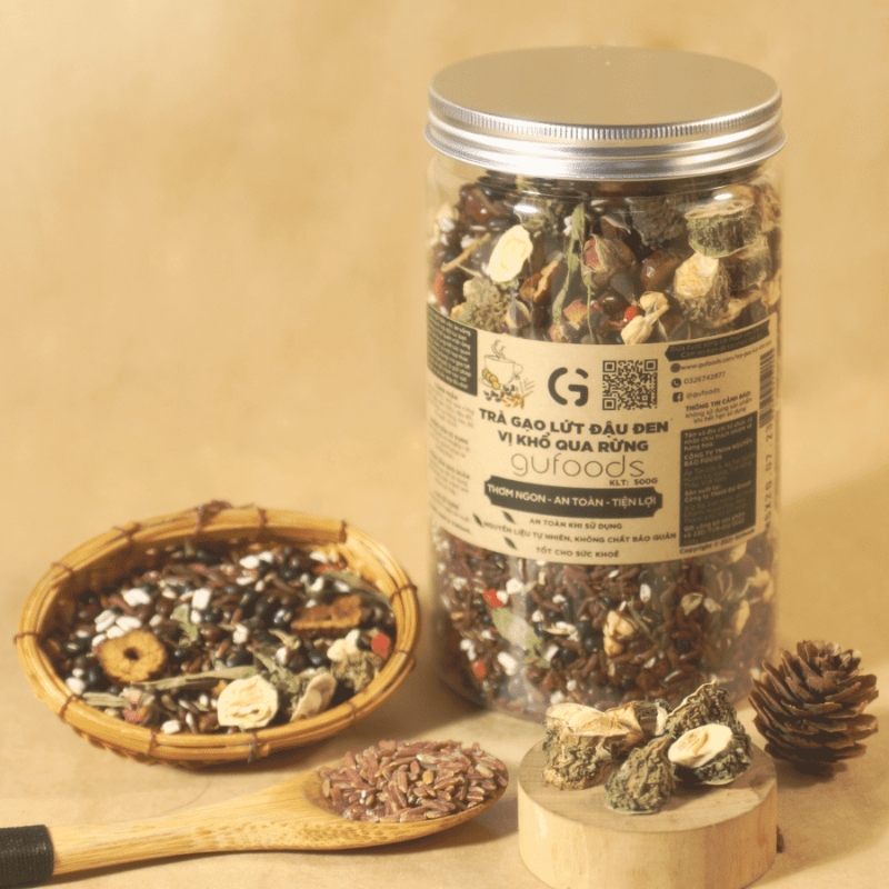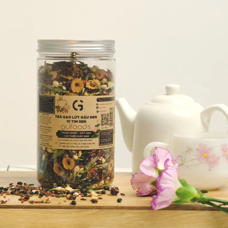 Trà gạo lứt đậu đen GUfoods với nhiều loại hương vị như thảo mộc, cúc long nhãn, mãng cầu, khổ qua rừng, tim sen là lựa chọn thức uống ngon lành để tinh thần thư giãn thoải mái trong những ngày căng thẳng. Với thành phần được kết hợp đa dạng từ những nguyên liệu từ thiên nhiên như khổ qua rừng, hoa cúc, long nhãn… trà gạo lứt đậu đen chứa hàm lượng chất xơ cao, những hoạt chất giúp cơ thể và tinh thần thư giãn, cũng như trà giúp hệ tiêu hóa hoạt động tốt hơn và hỗ trợ đắc lực cho quá trình ăn kiêng, eat clean của bạn thương đó!