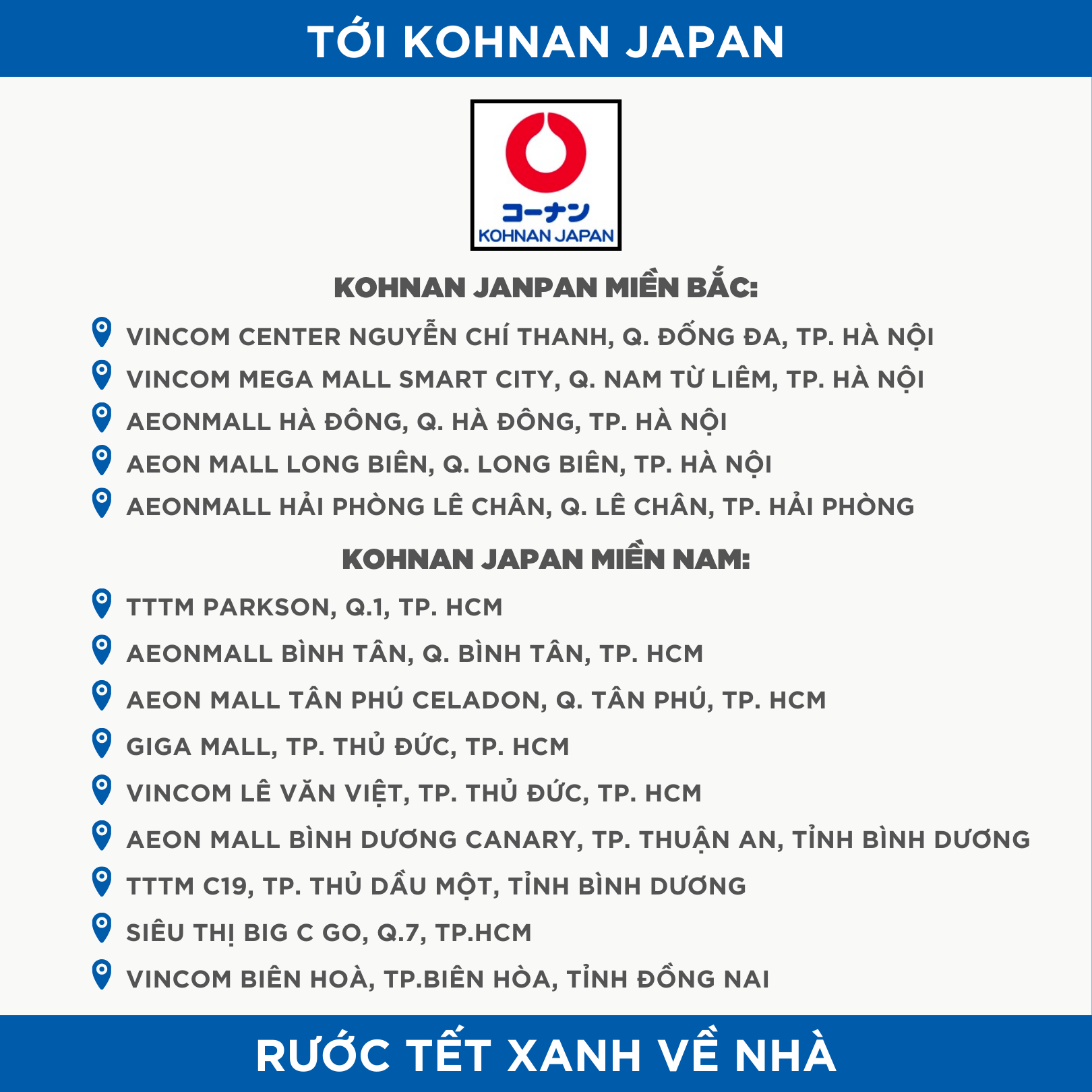 Bên dưới là các địa chỉ cửa hàng của Kohnan Japan ở toàn quốc, bạn thương có dịp nhớ ghé qua để ngắm nghía và lựa chọn cho mình những món thật ngon, lành, sạch và đậm chất truyền thống Việt Nam nhé!