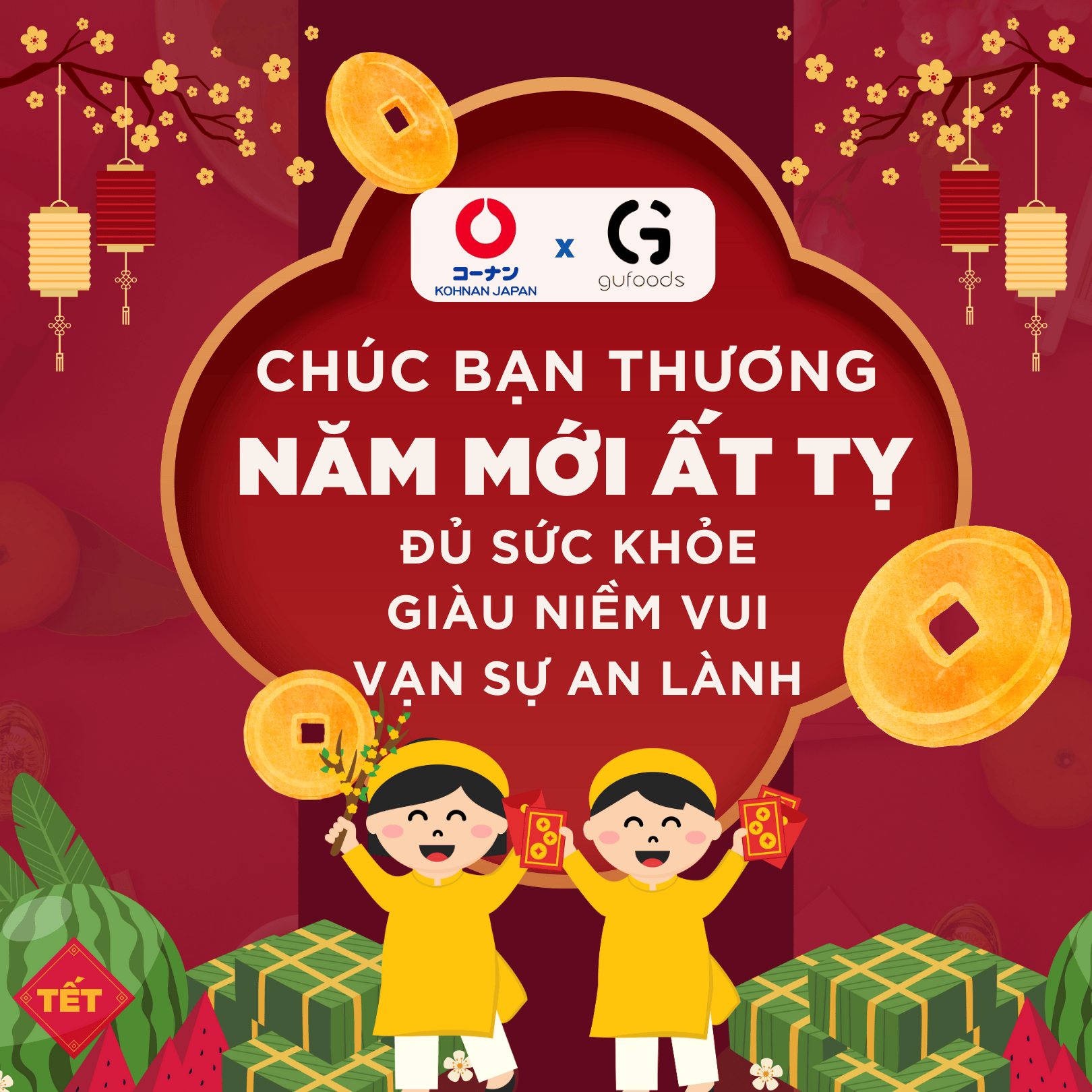 Nhân dịp Tết Nguyên Đán, nhà GU xin chúc bạn thương và gia đình một năm mới an khang thịnh vượng, vạn sự như ý, sức khỏe dồi dào và thật nhiều niềm vui! Nhà GU mong rằng những sản phẩm lành mạnh từ GUfoods sẽ mang lại cho bạn một mùa Tết trọn vẹn, đong đầy yêu thương và ngập tràn sức khỏe. Chúc bạn một năm mới thật an lành và đừng quên ghé qua Kohnan Japan để lựa chọn những món quà Tết ý nghĩa từ GUfoods nhé!