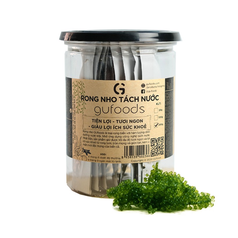 - Rong nho tách nước GUfoods là sản phẩm mới ra mắt thuộc dòng ăn kiêng, loại rong biển này chứa hàm lượng dinh dưỡng cao bởi nó giữ được 99% độ tươi ngon và lợi ích cho sức khoẻ.