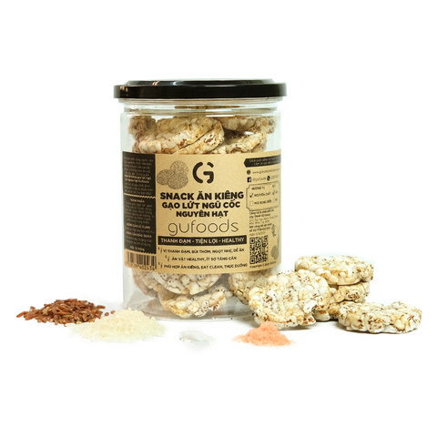 - Snack ăn kiêng gạo lứt ngũ cốc nguyên hạt GUfoods giòn tan và giàu chất dinh dưỡng sẽ là món ăn vặt đầy hấp dẫn thỏa mãn mọi đam mê ăn vặt của bạn thương!